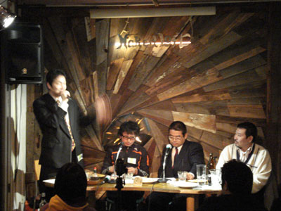 平成19年3月8日、新宿ネイキッドロフトにて、統一戦線義勇軍議長針谷大輔が「男たちの国防論」vol.2を開催しました。 登壇者に愛国党の舟川孝総隊長、故野村秋介門下生の古澤俊一氏、飛び入り参加下さった三沢浩一氏の三氏を迎え、『アメリカと中国、どちらが脅威か!?』の議題で熱きトークバトルを繰り広げました。 当日、会場は前回同様の盛況の中、午後七時より開始。 まず、中国とアメリカどちらが脅威かの問いに、舟川総隊長「アメリカ」、古澤氏「アメリカ」、三沢氏「どちらも」、針谷議長「中国』との意見。